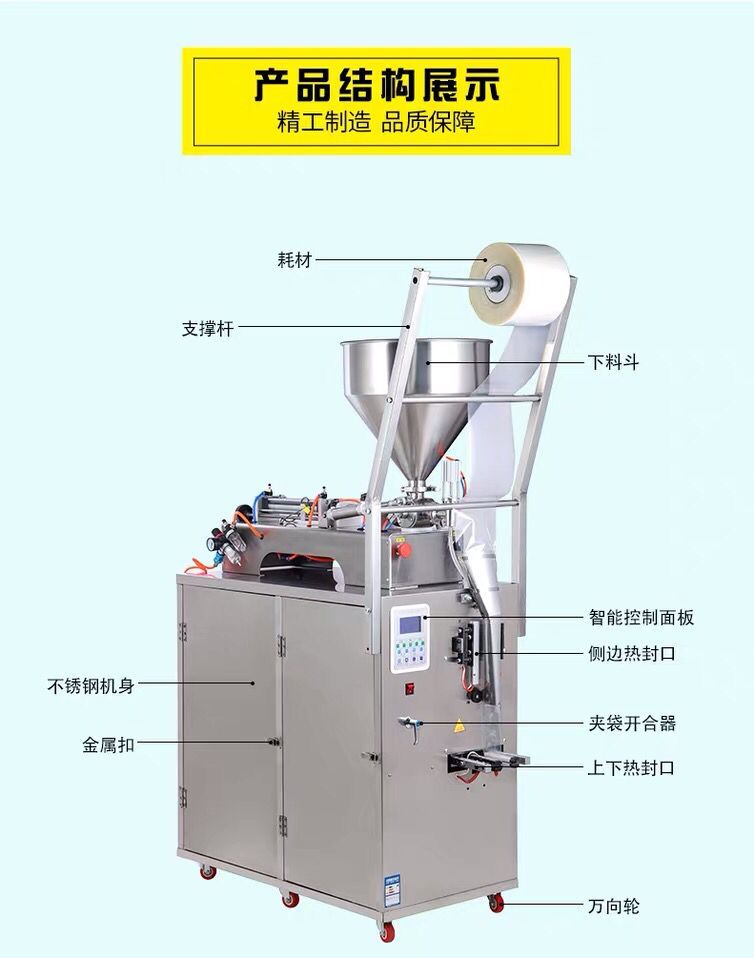 Liquid Packaging Machine (Three-Sided Seal) Liquid Packaging Machine (Back Seal) Sauce Packaging Machine (Three-Side Seal) Sauce Packaging Machine (Back Seal) Vertical Mixer Horizontal Mixer (U Type) Date Printer Multi-function Dispenser Non-standard Size Custom Shot, Deposit
