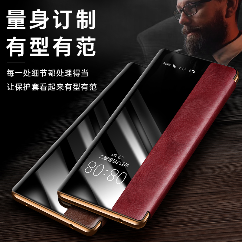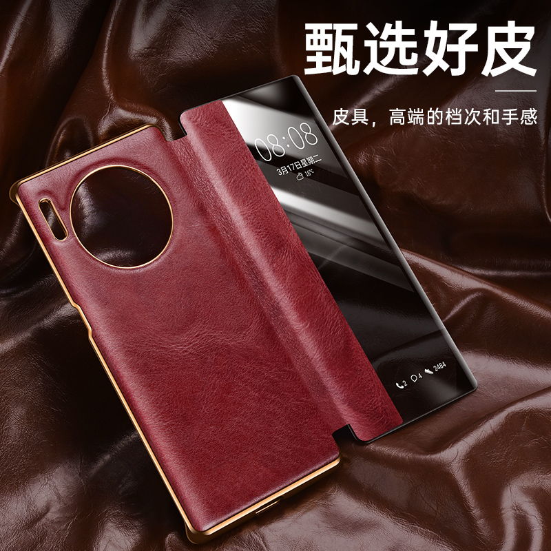 Huawei mate30pro mobile phone protection shell genuine leather clamshell 5G version mate30 smart protective sleeve mata full package anti-fall meta ultra-thin pr0 upscale por male meme
