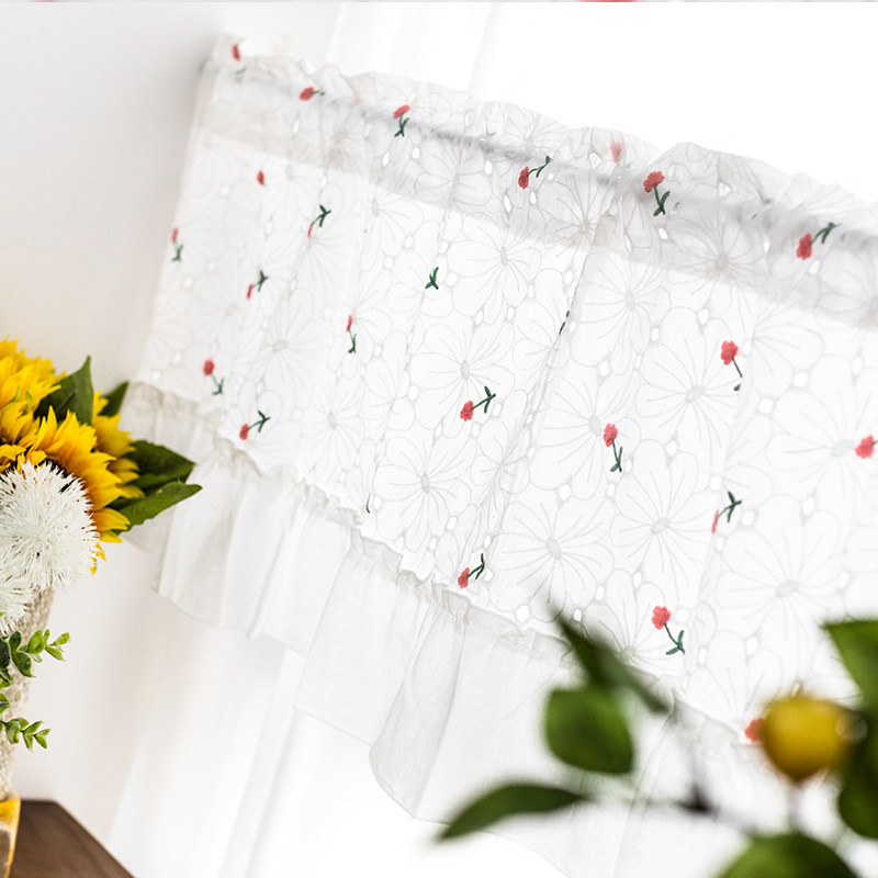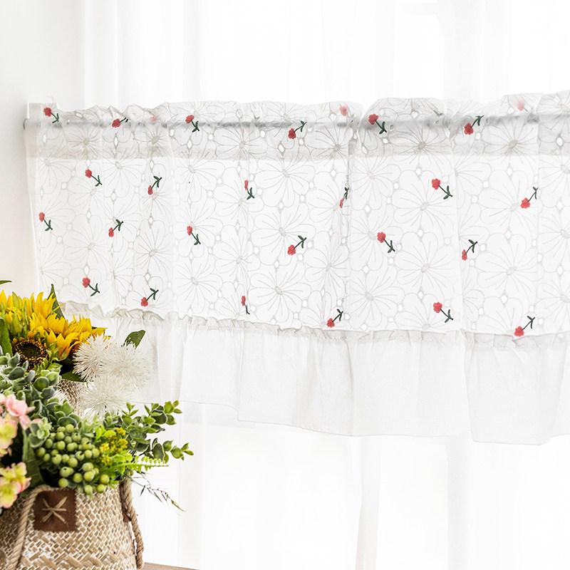 White embroidery small floral half curtain American retro coffee cord fabric short curtain bedroom short window partition curtain free punch