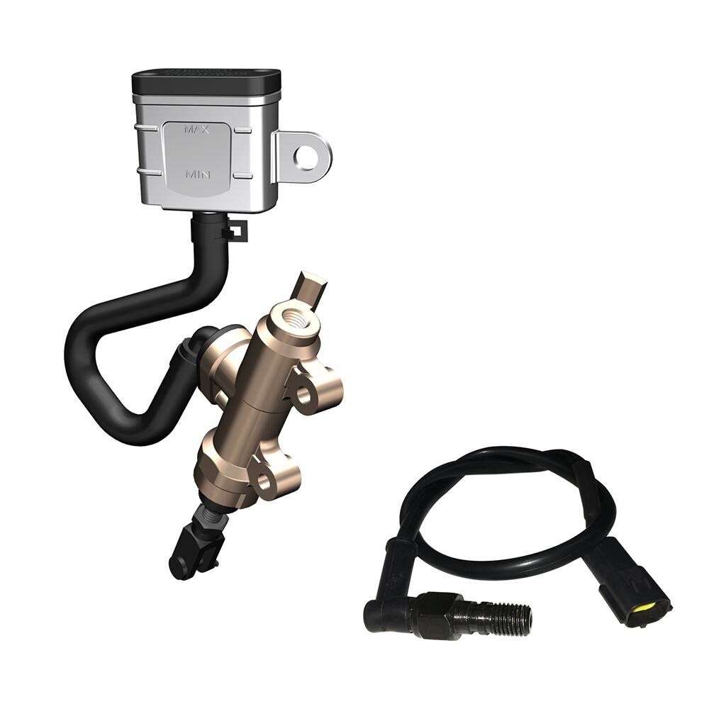 Front disc brake handle right side handlebar switch front upper pump right rear-view mirror front clamping pliers to control unit tubing front upper pump to control unit tubing hydraulic control single-dollar rear main pump to control single-element rear caliper to control