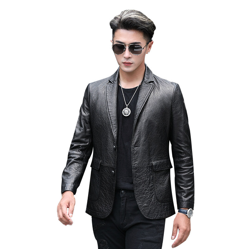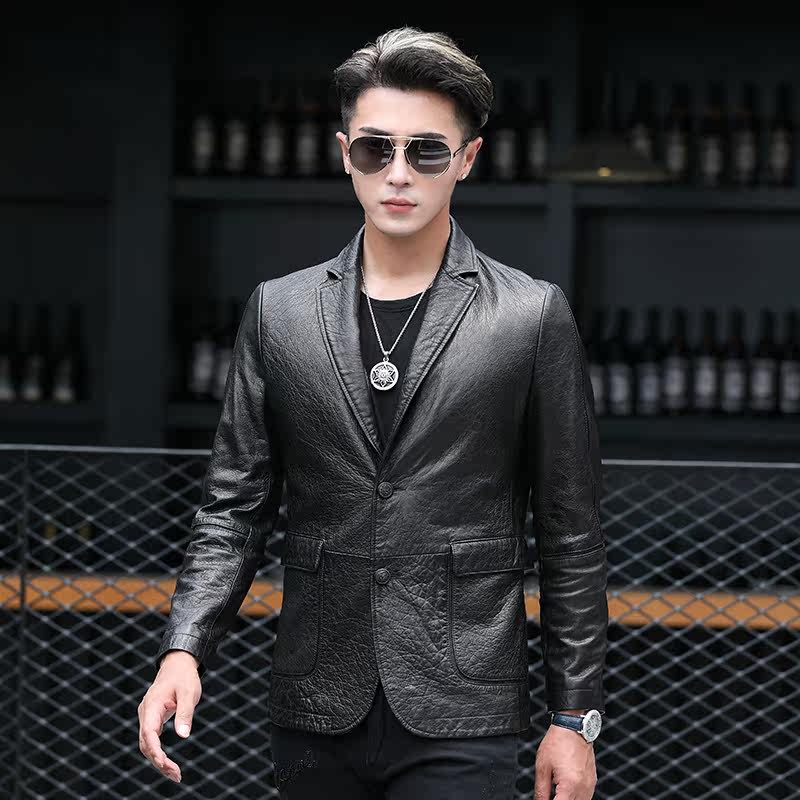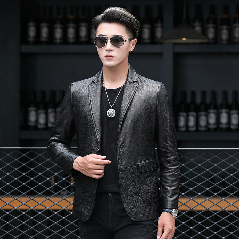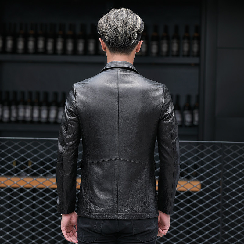 Fall Hainen fur coat men's leather uptight suit collar leather jacket sheep leather medium long version of soft leather jacket Piscey clothing