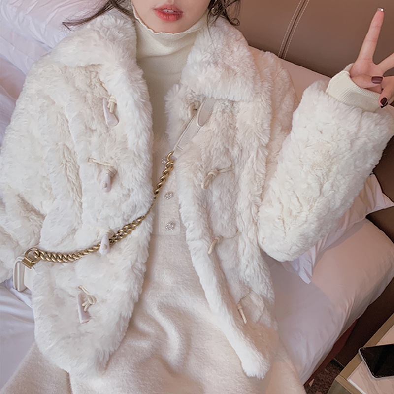 2022 Haining winter new white horn button of otter rabbit fur coat female thicker lean fur coat