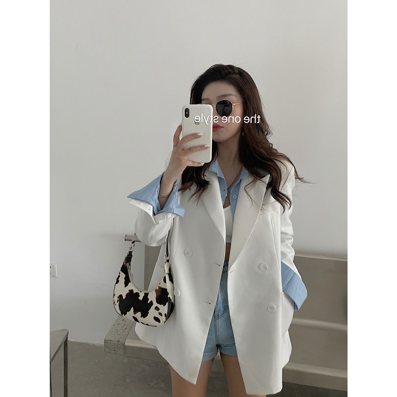 Korean version of loose drape white small suit jacket 2021 spring and autumn new suit women's fashion