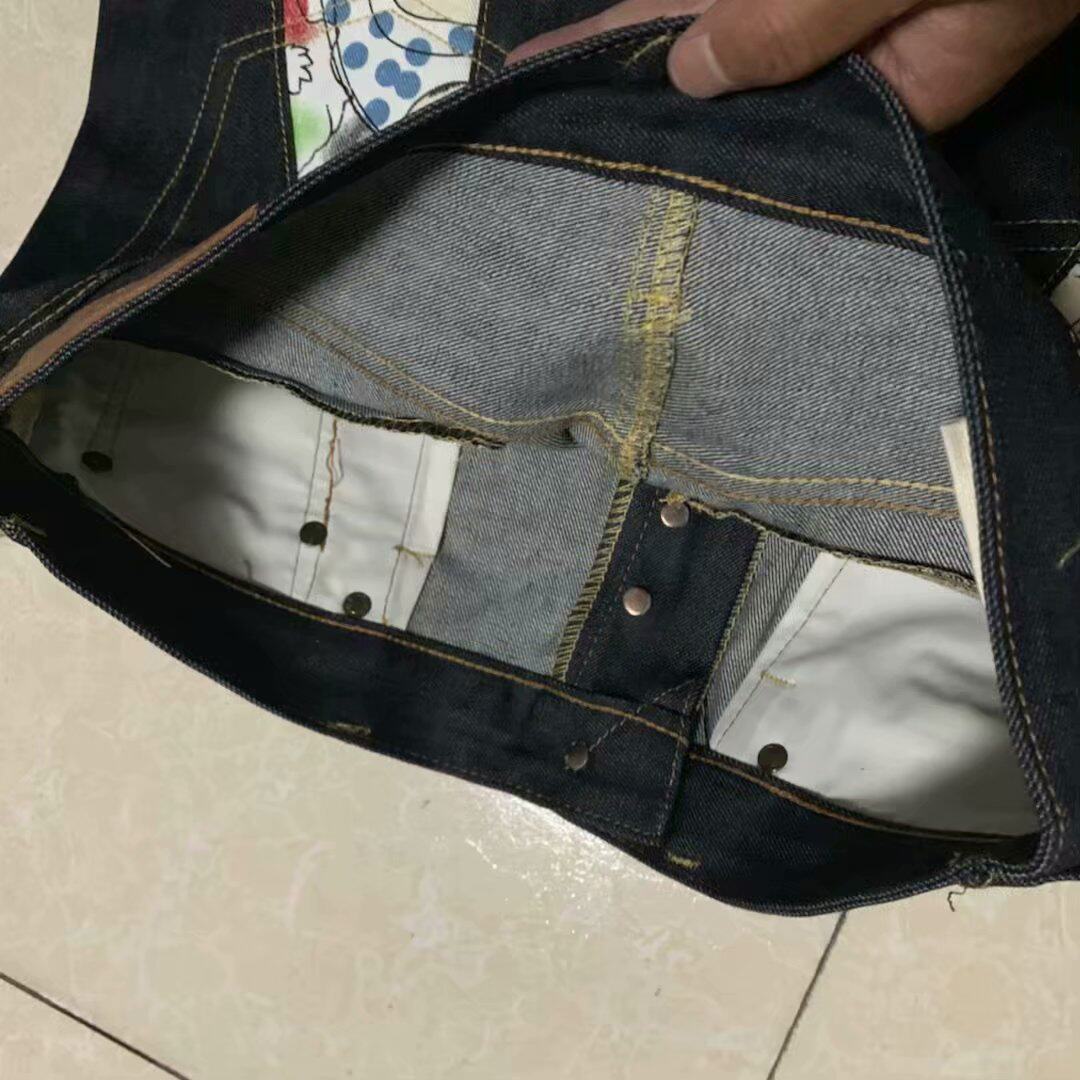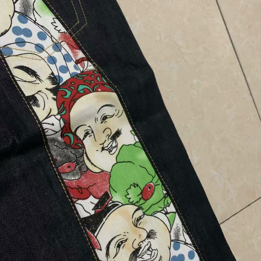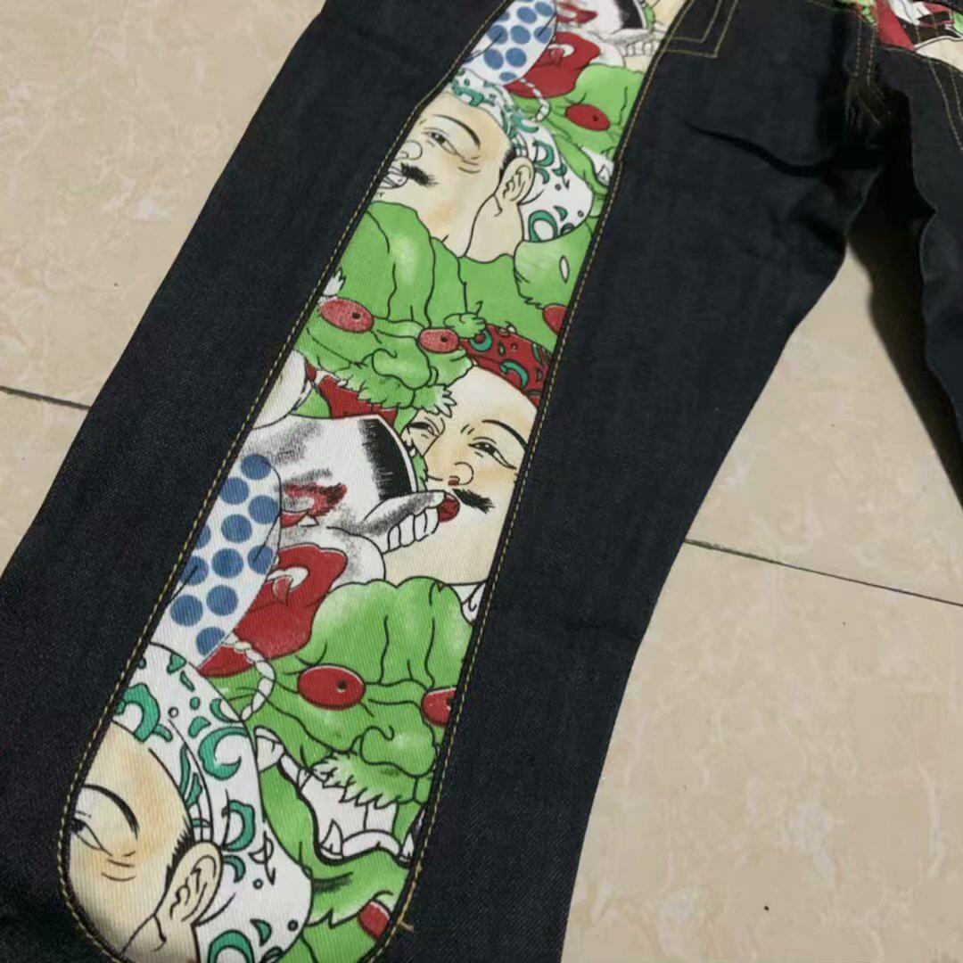 Japanese painted large m cut label tail goods fashion men's slim-fit undressed denim pants