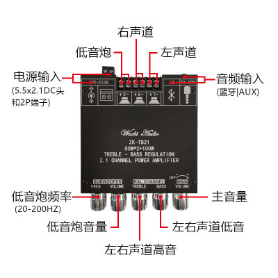 Wuzhi Audio2 1 channel Bluetooth digital power amplifier board module high and low tone overweight low-tone gun high power