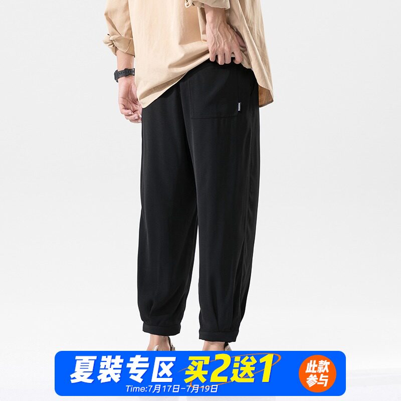 Summer thin pants men's Korean version of the trend casual pants loose sports pants ice silk trousers Large size men's wide leg pants