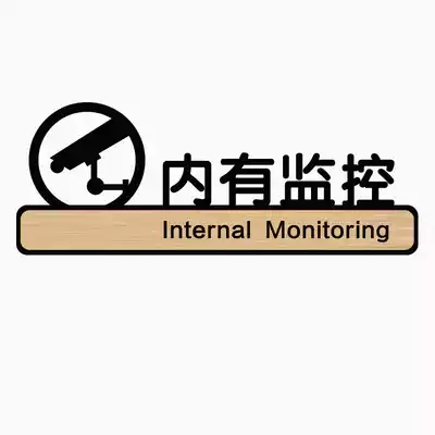 There is a monitoring warning sign sticker in acrylic. You have entered the monitoring area. The wall is marked with a warning sign.