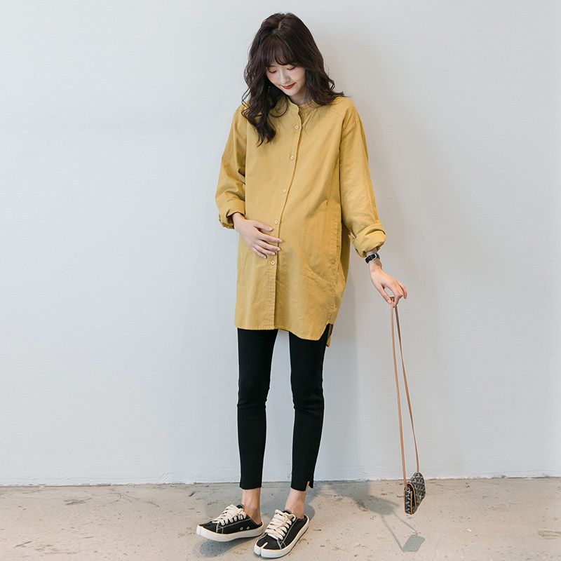 Pregnant Woman Shirt Spring Dress Medium Long Version Pure Cotton Loose Large Size Shirt 2021 New Suit Gestational Woman Dress With Long Sleeves