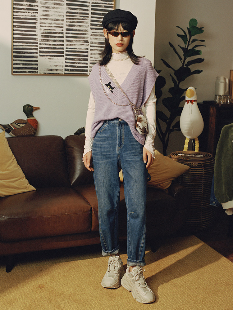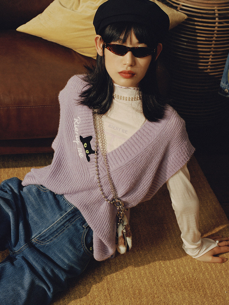 (RIENYRE series) MAXRIENY autumn new sleeveless pullover mohair knitted vest for women