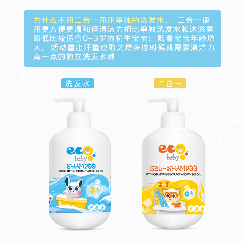 ECO BABY3-6-12 years old shampoo for boys and girls children special smooth silicone-free oil anti-dandruff anti-itch