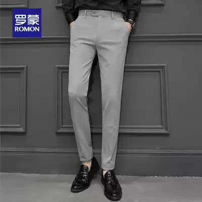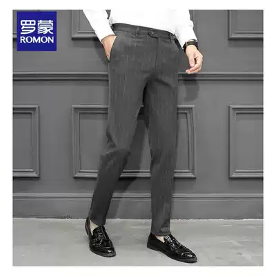 Romon striped trousers Men's Korean slim-fit young and middle-aged small straight business casual pants autumn and winter long pants