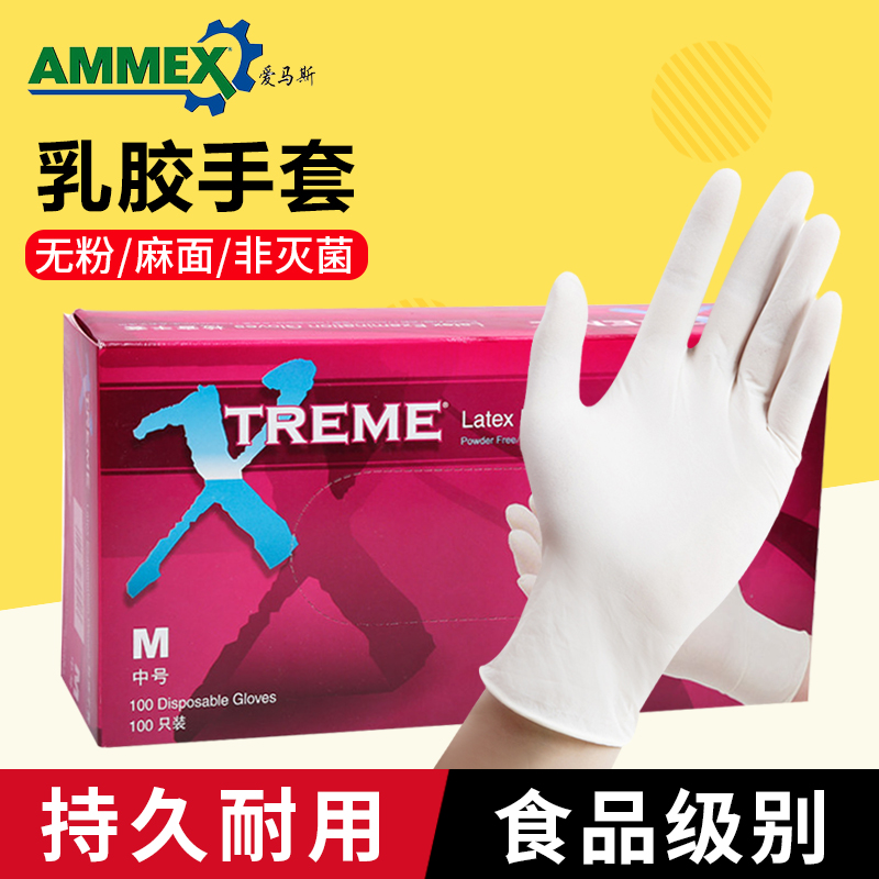 Emas disposable latex gloves thickened food grade household waterproof wash dishwash sanitary oral rubber gloves