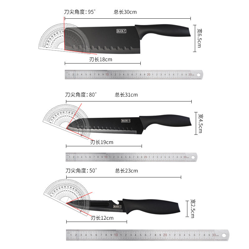 Black-edged black-edged chef black-edged fruit knife Black-edged two-piece set (kitchen knife) Black-edged three-piece set (kitchen knife and scissor) Black-edged three-piece set (kitchen knife and fruit)