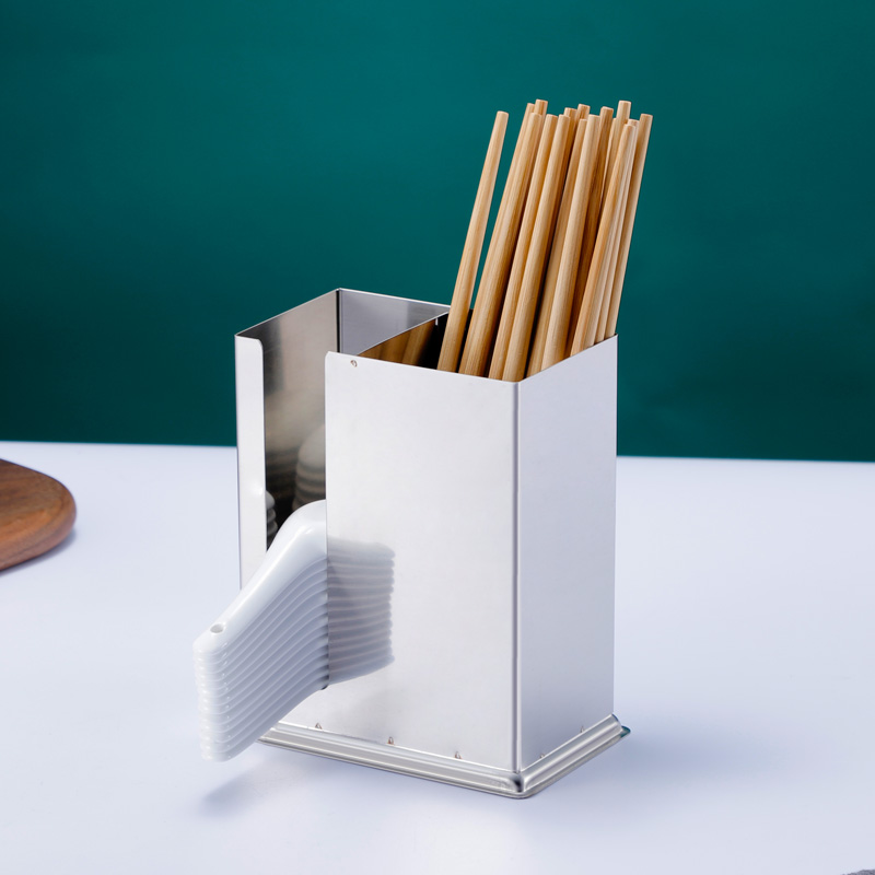 Stainless steel chopsticks tube square thickened chopsticks basket dining room large food stalls fast spoon spoon storage box restaurant chopsticks box commercial
