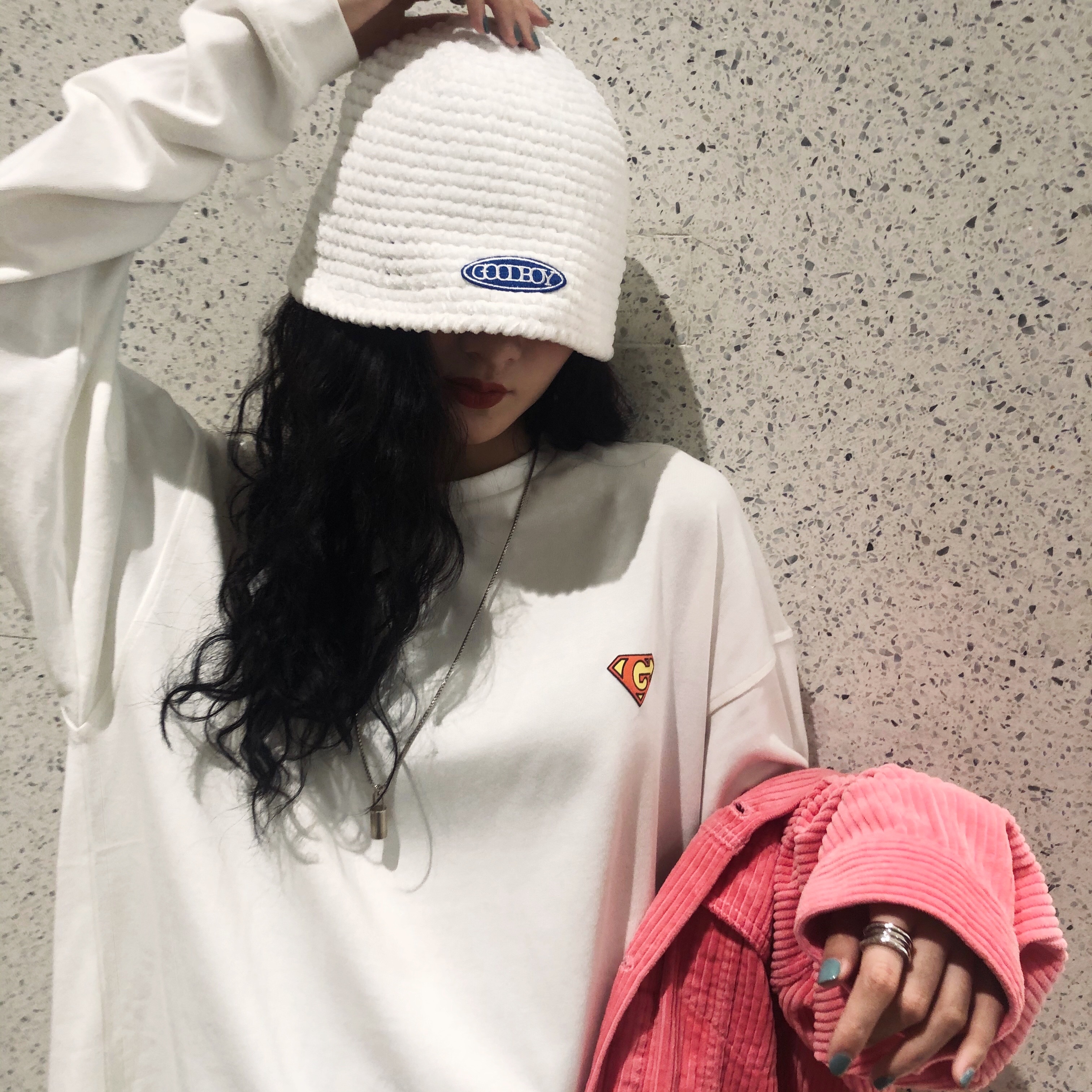 (H) GOOD GOODS KING BOY LONG sleeve diamond superman foaming agent sweater T-shirt