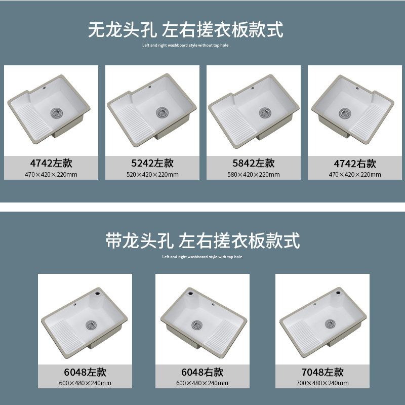 Balcony ceramic laundry basin with washboard under-counter basin to deepen household washbasin sink left and right board size embedded