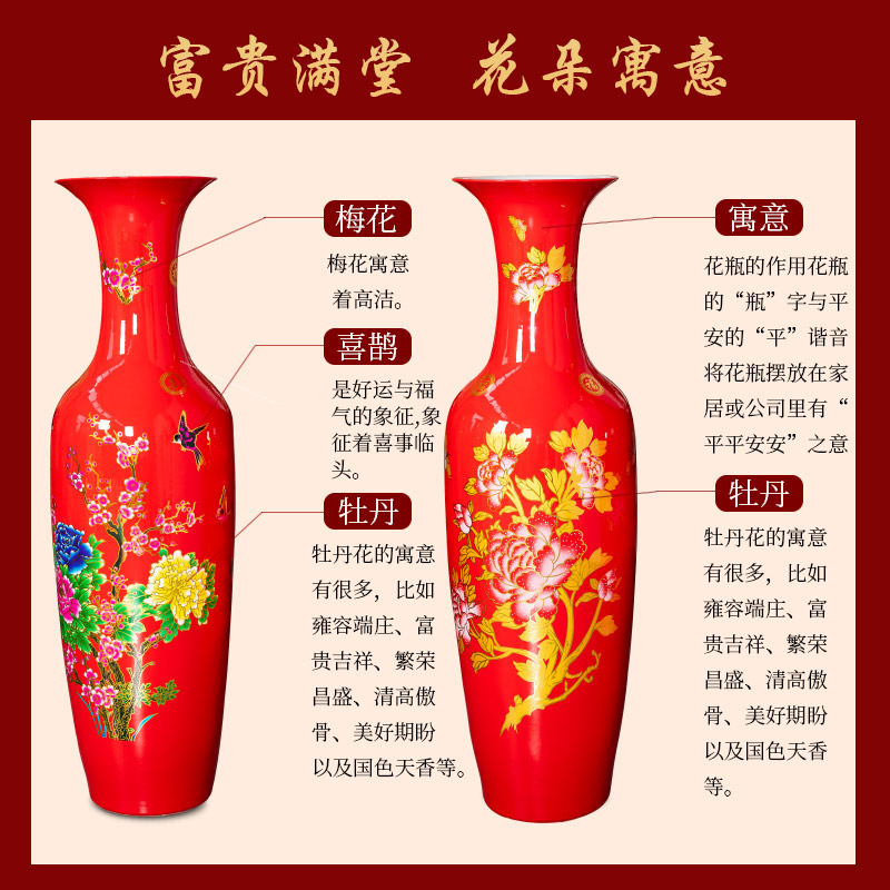 Jingdezhen Ceramics Chinese China Red Landing Large Vase Living Room Adornment Porcelain Pendulum with large opening
