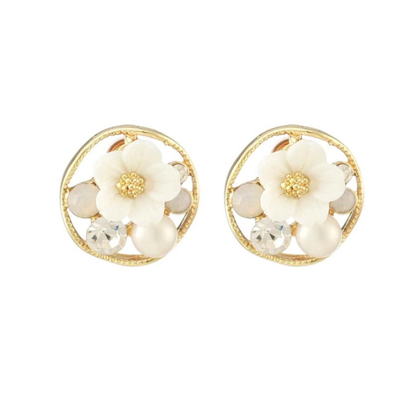 S925 silver needle Mori system Xianfan Flower Ear Nail Geometric Circular Hollowed-out Diamond Earrings Temperament Pearl Earrings 159