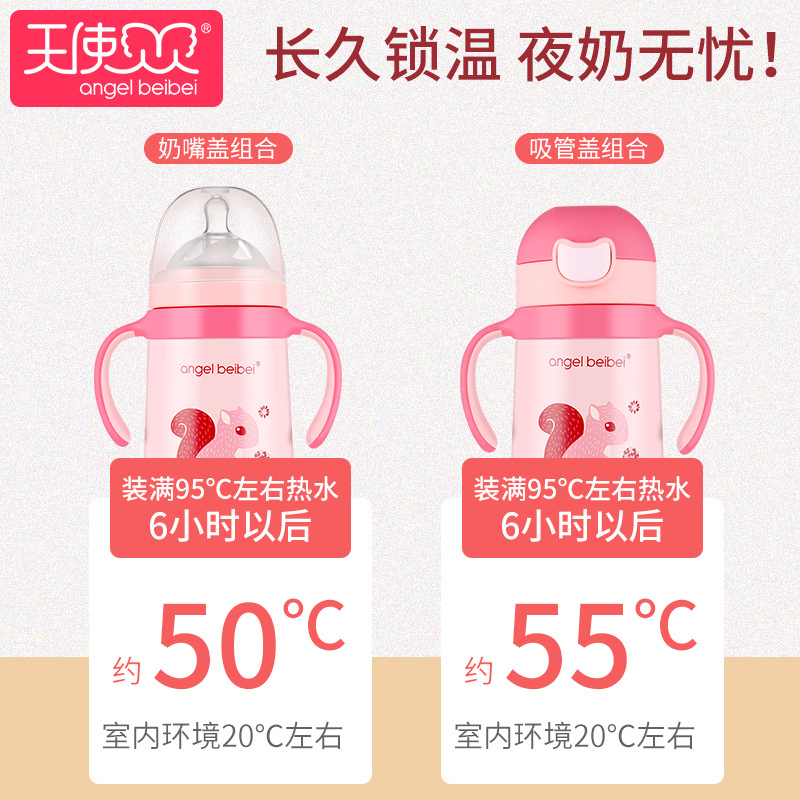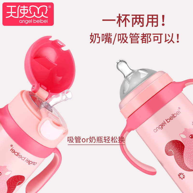 Children's portable dual-use silicone pacifier with handle Insulated bottle 316 stainless steel baby straw Drop-proof thermos