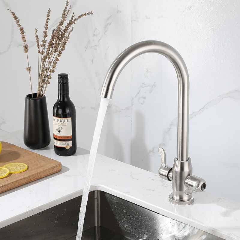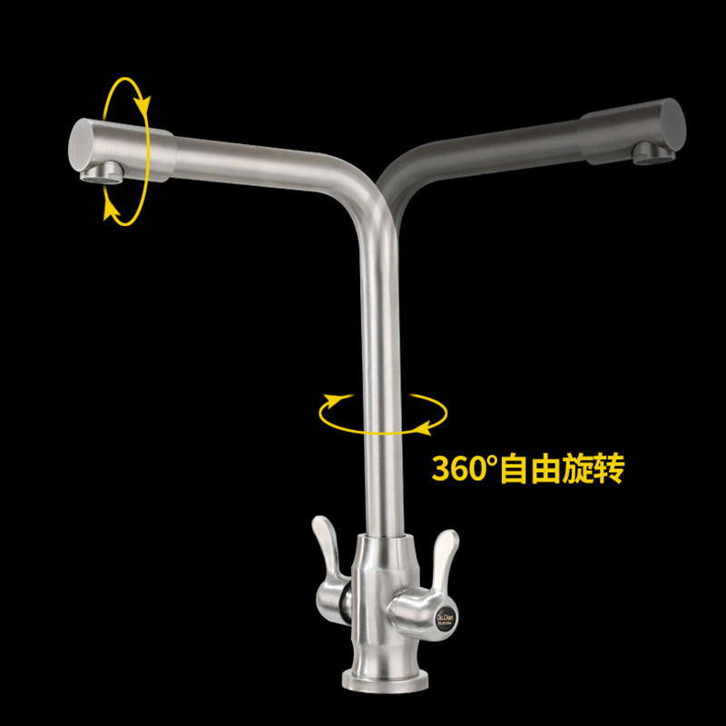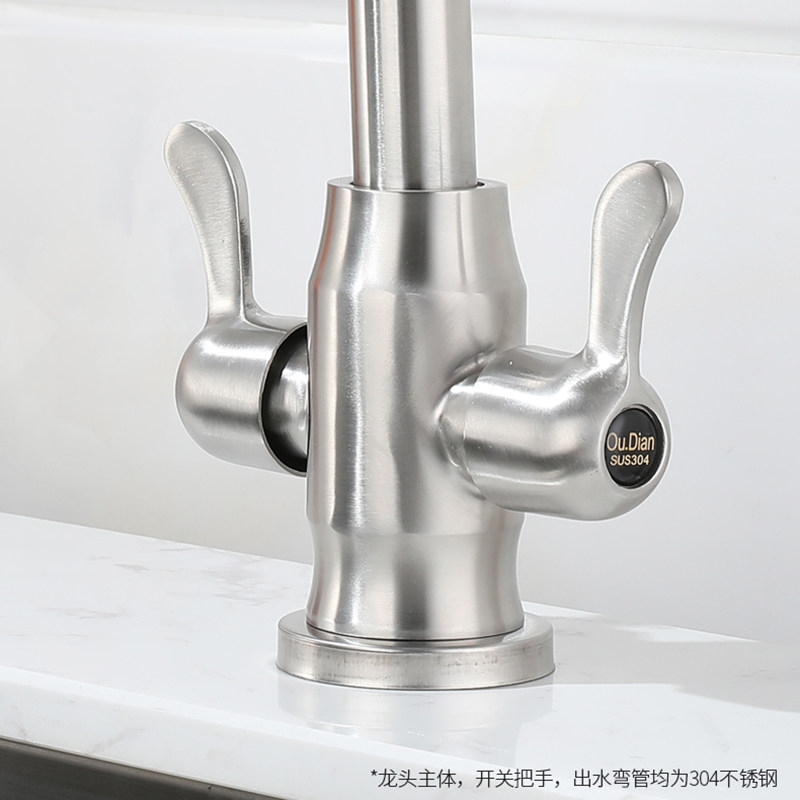 Kitchen 304 hot and cold double switch big bend (whiteboard handle) 80cm water-in-pipe kitchen 304 hot and cold double switch big seven-word rotary nozzle kitchen 304 hot and cold double switch small seven-word rotary nozzle