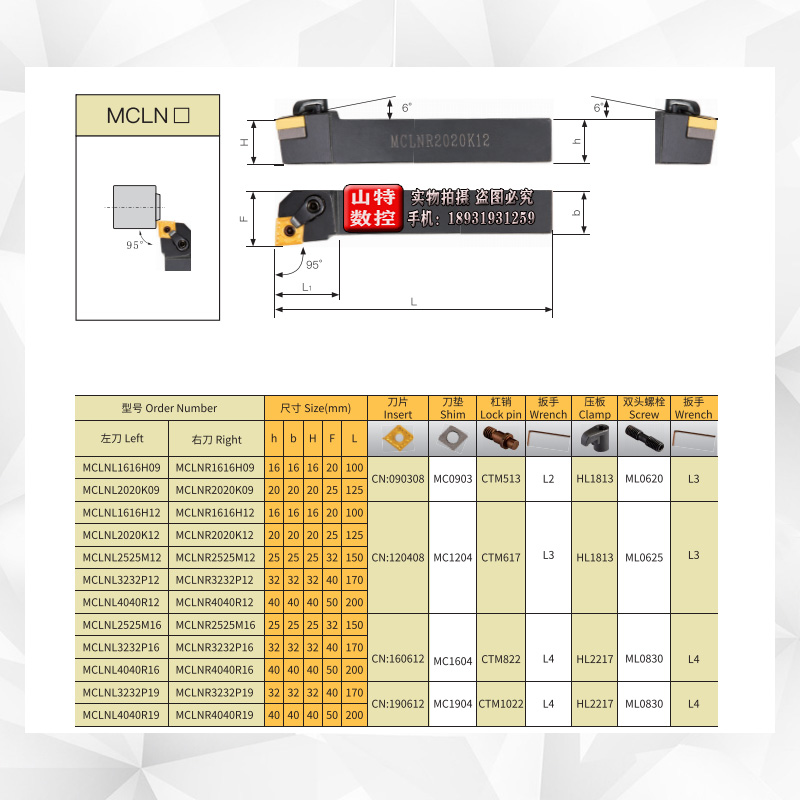 MCLNR1616H12 positive knife MCLNL1616H12 anti-knife MCLNR2020K12 positive knife MCLNL2020K12 anti-knife MCLN