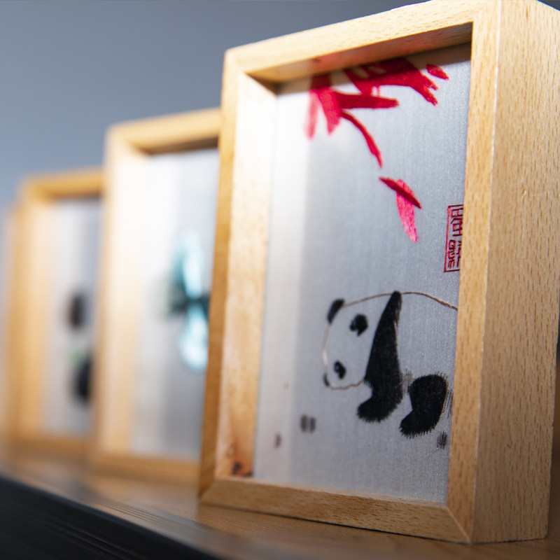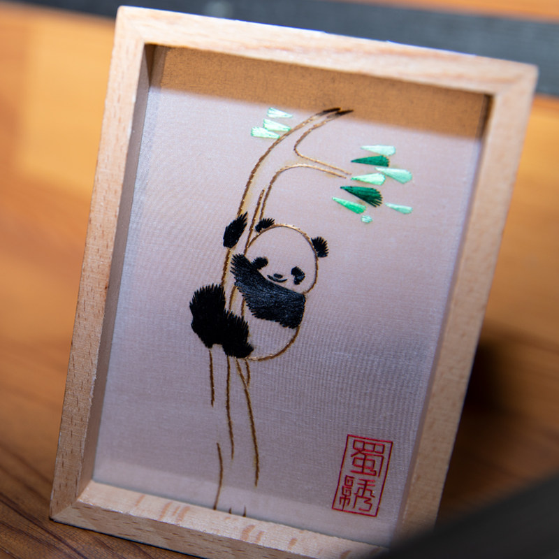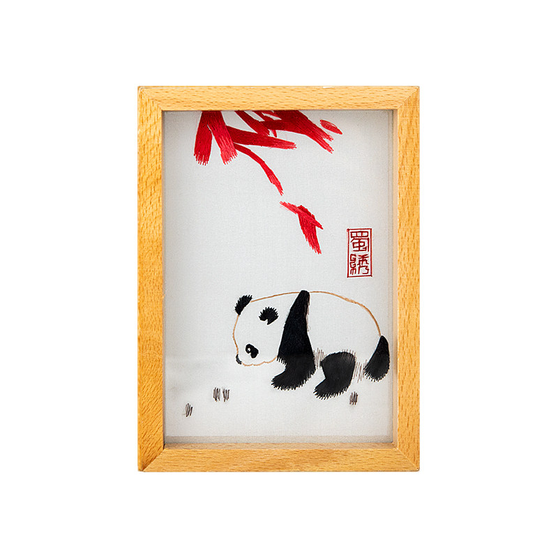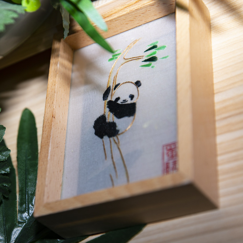 Panda Series Shu Embroidery Small Pendulum Piece Gift Living Room Desk Decoration Handmade Bifacial Embroidered Sichuan Non-Suicide Companion Gift