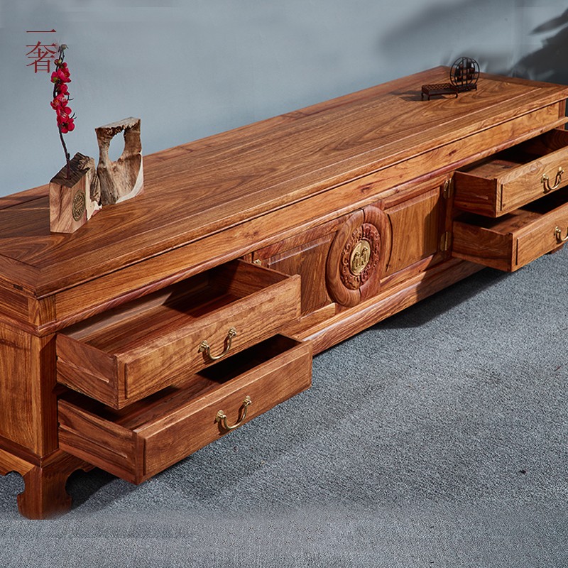 Mahogany TV cabinet hedgehog red sandalwood reunion floor cabinet rosewood new Chinese living room combination solid wood furniture storage cabinet