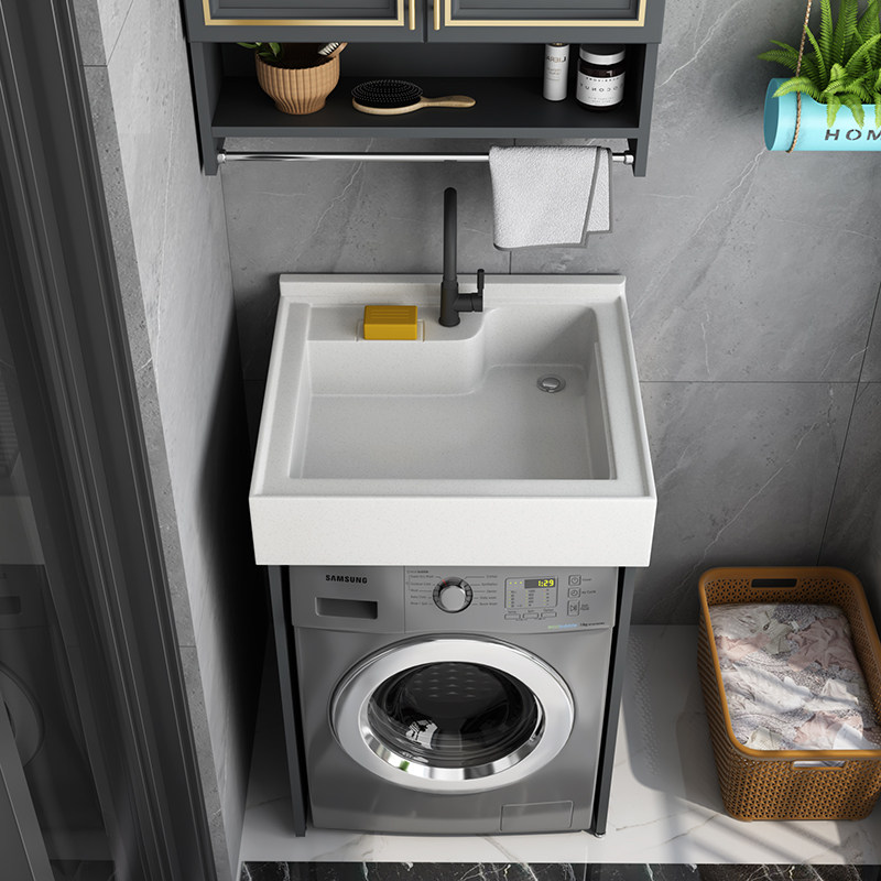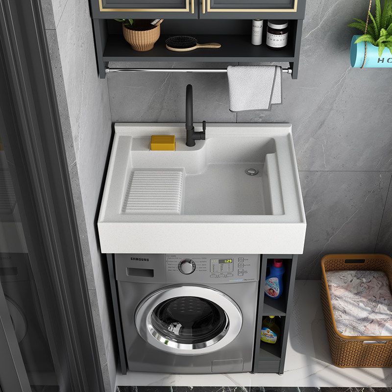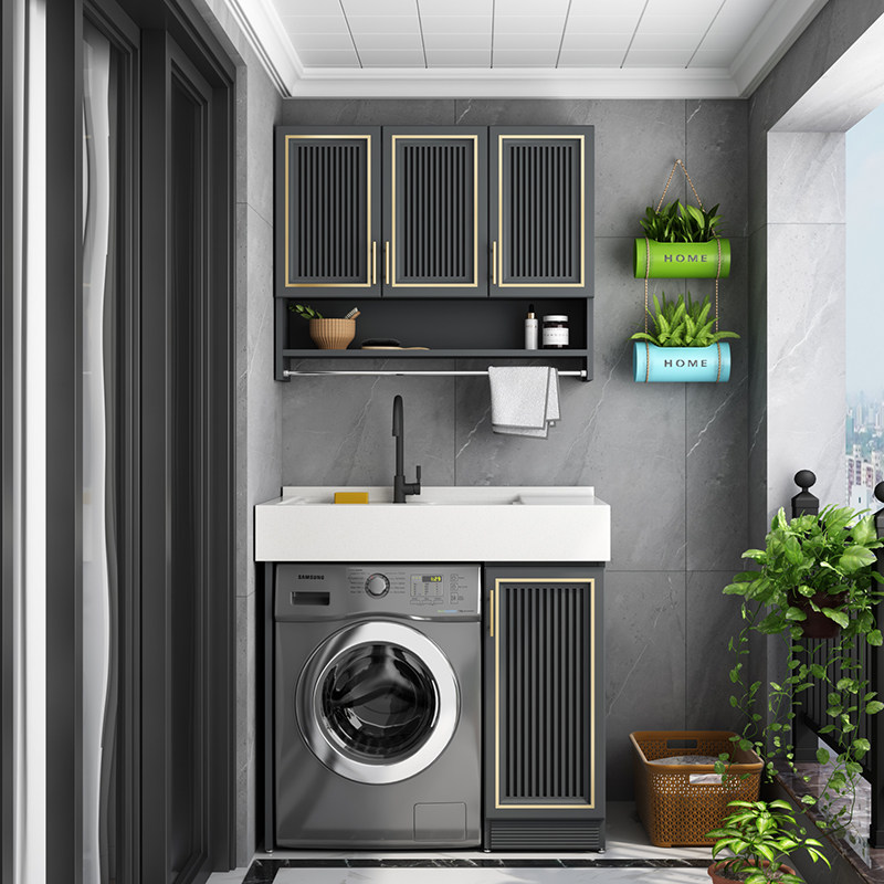 Space Aluminum Laundry Cabinet Balcony Laundry Pool Bath Room Cabinet Combination Small Family Type Washing Machine Cabinet Drum Companion Wash Basin