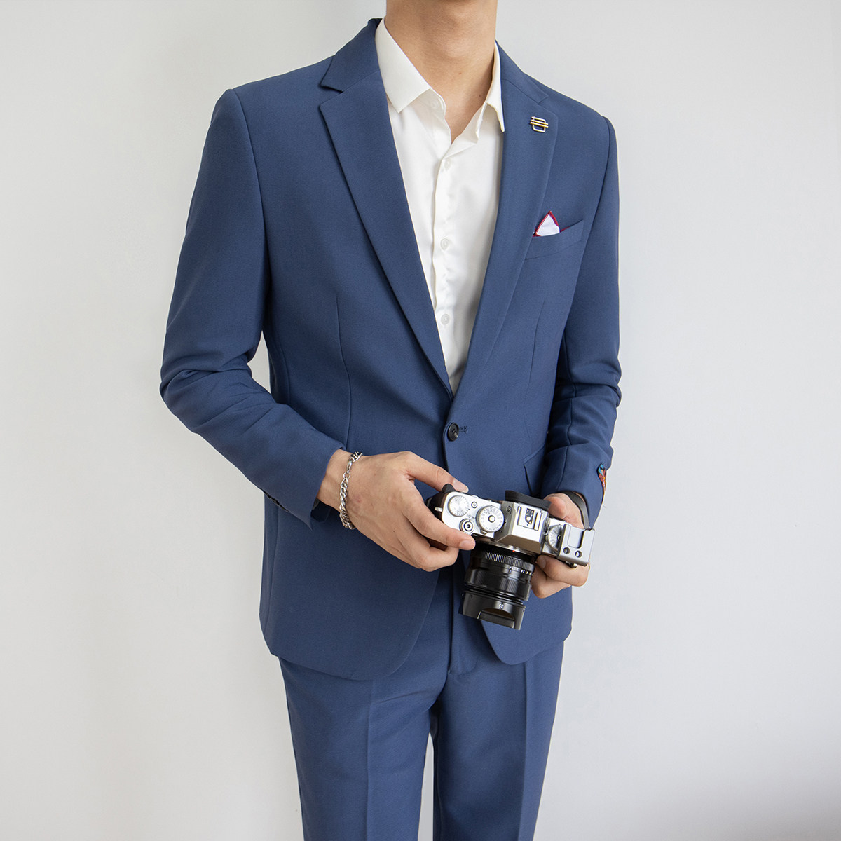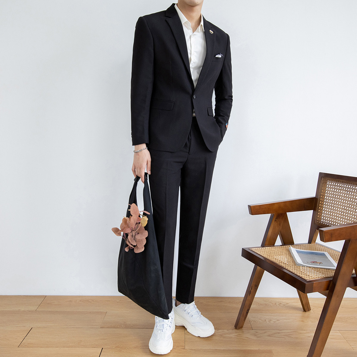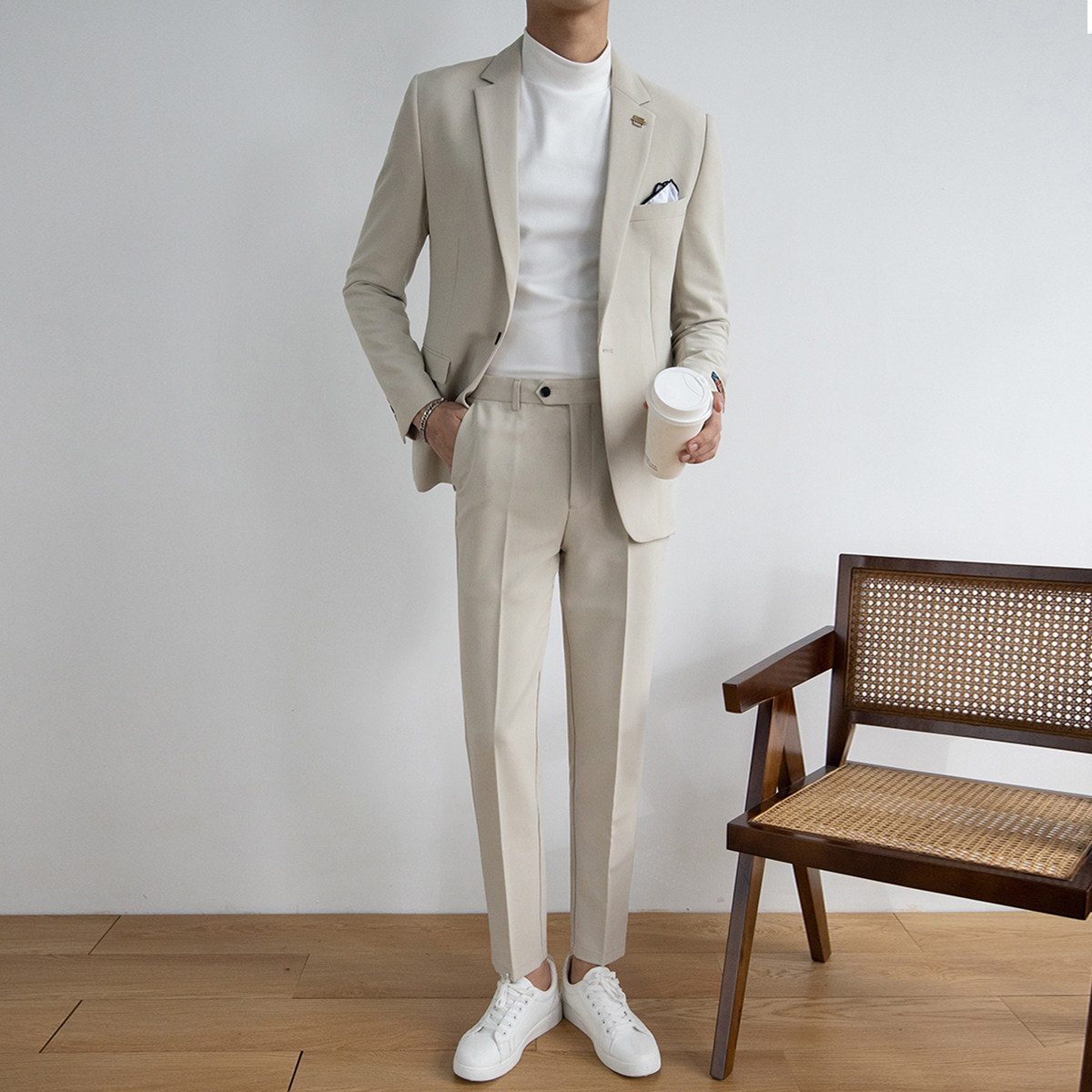 Casual suit set men's Korean version slim fashion business formal suit small suit British style groom wedding dress