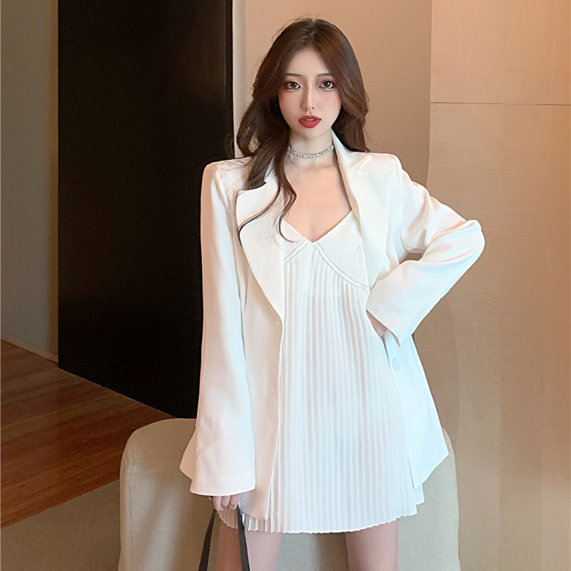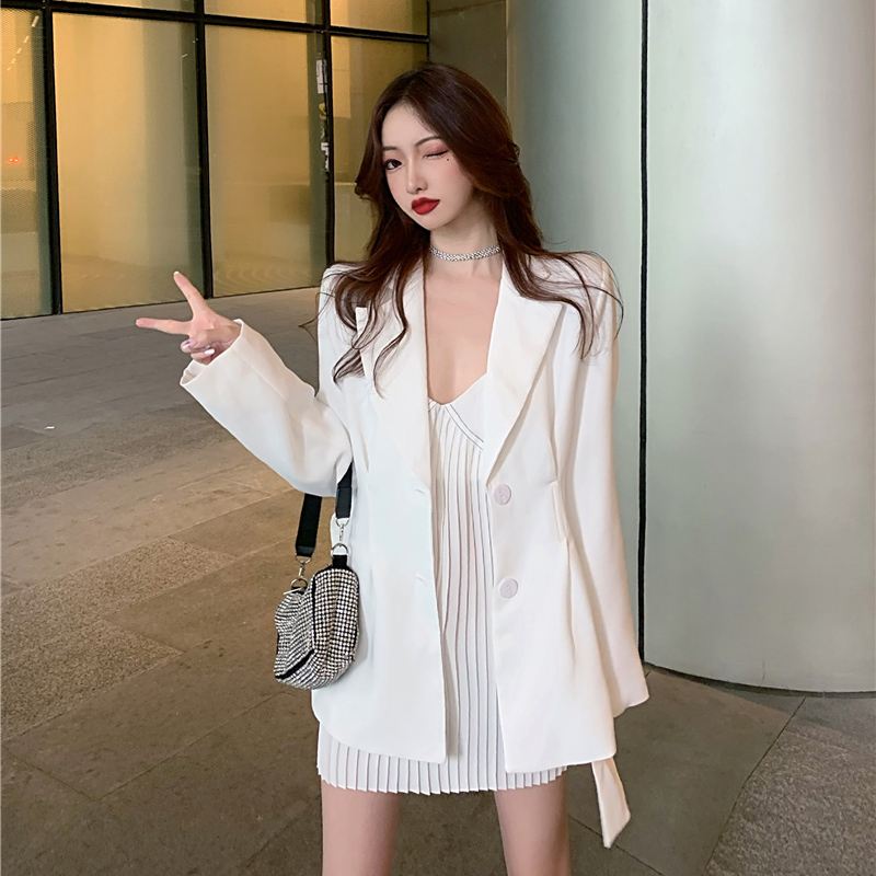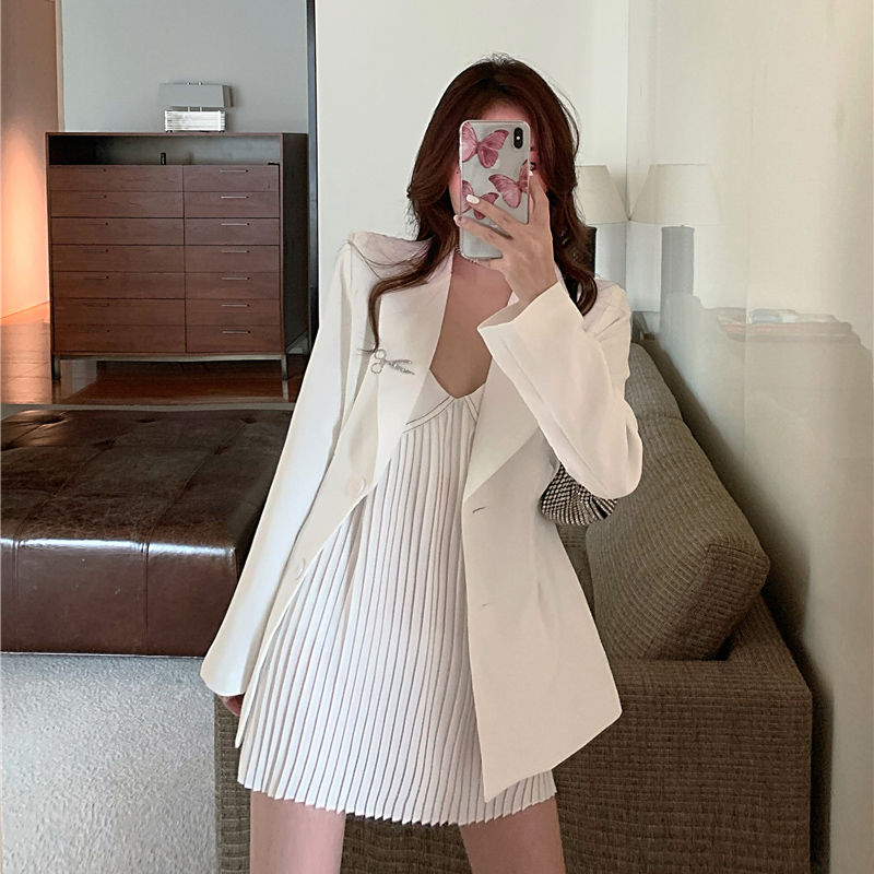 Tide Card 2022 New Autumn Winter Loose Medium Long Version White Fashion Temperament Suit Jacket Foreign Dress Suit Woman