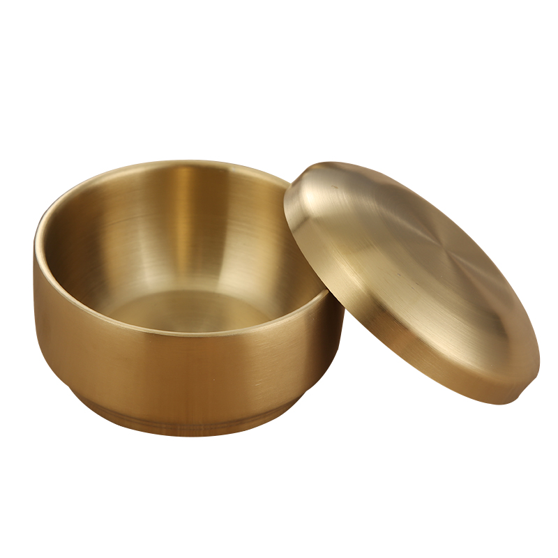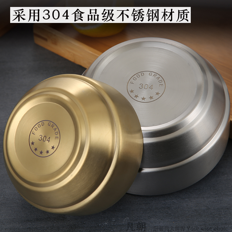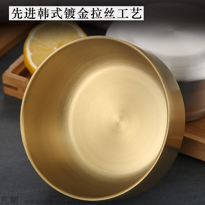 304 Korean-style stainless steel cutlery with a lid bowl soup bowl Home Double heat insulation Children Korean Meal Rice Golden Small Bowl
