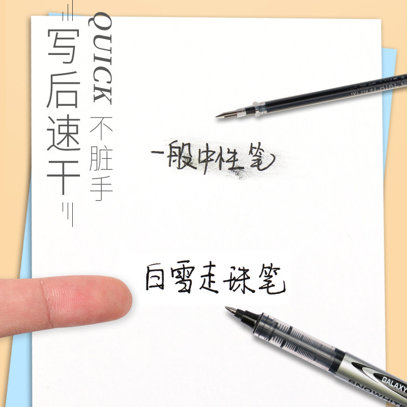 White Snow Straight Liquid Type Water-based Ballpoint Pen 0 5 Speed Dry Middle School Students With Blue Black Red Pen Needle Tube Type Writing Subwarhead Large Capacity Middle Class Pen Aqueous Pen Students Sign Pen Round Pearl with medium water pen