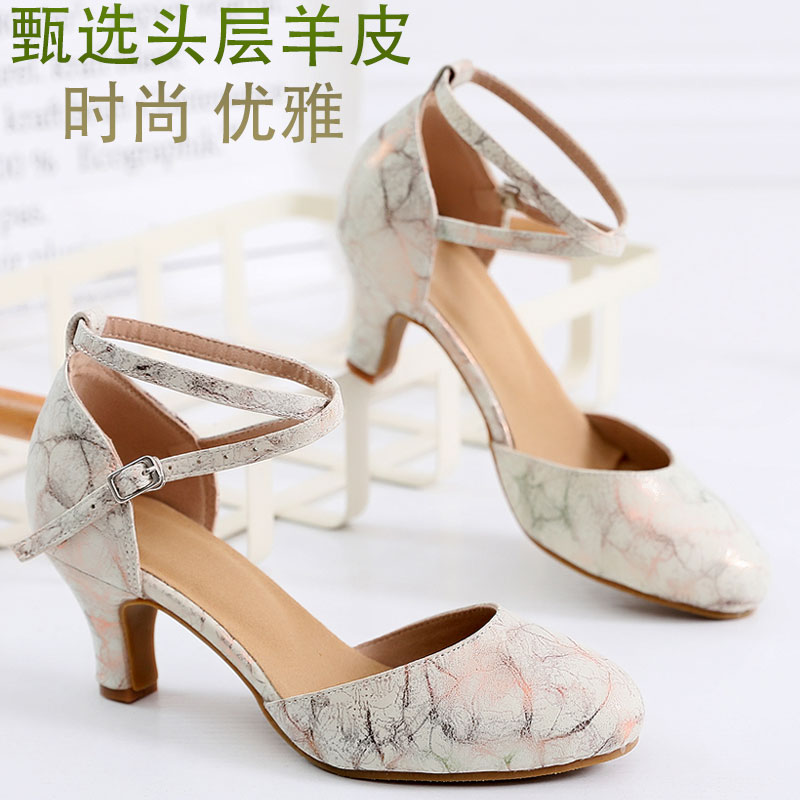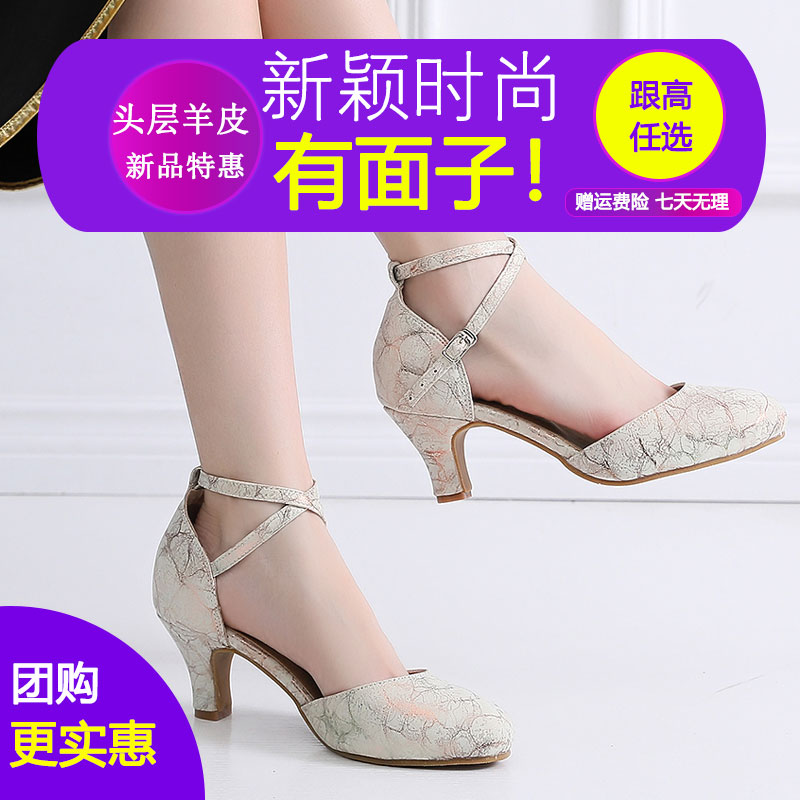 Real Leather Latin Dance Shoes Lady Adults Square Dancing Shoes Social Dance Shoes with Dancing Sandals Soft-bottom Specialties