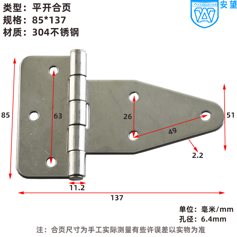 85 * 137 heavy hinge triangular tip type large hinge vane type hinge mechanical equipment hinge stainless steel 304