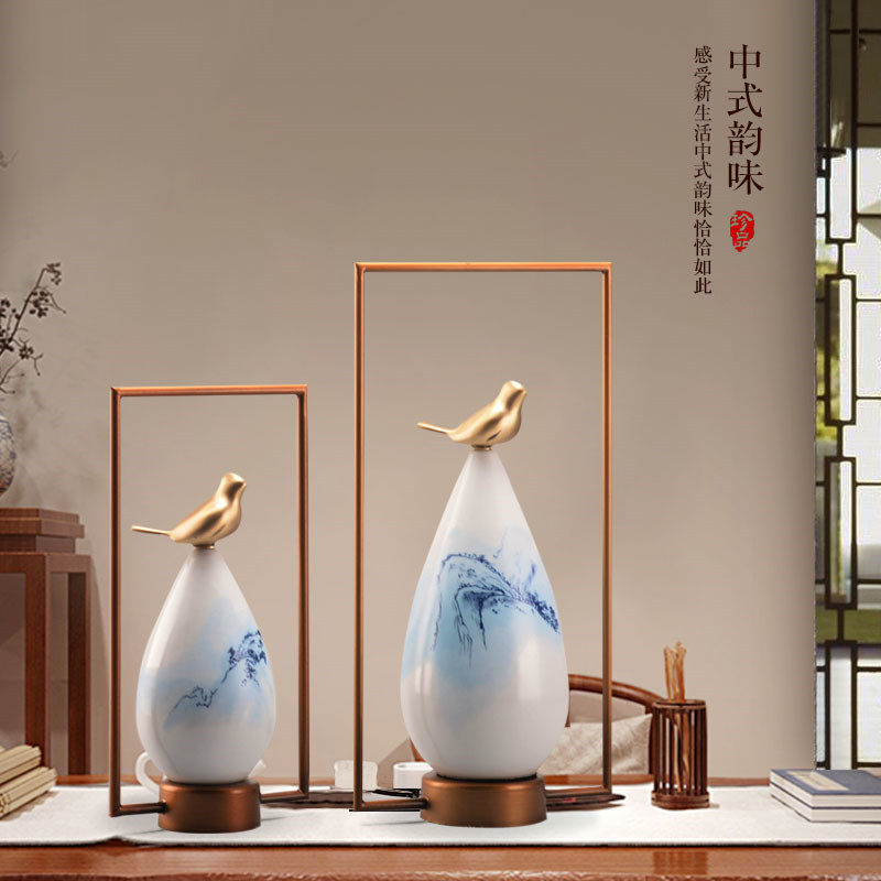 Metal ceramic bird Zen furniture modern minimal soft decoration sample room Xinhuanshu Chinese home furnishings