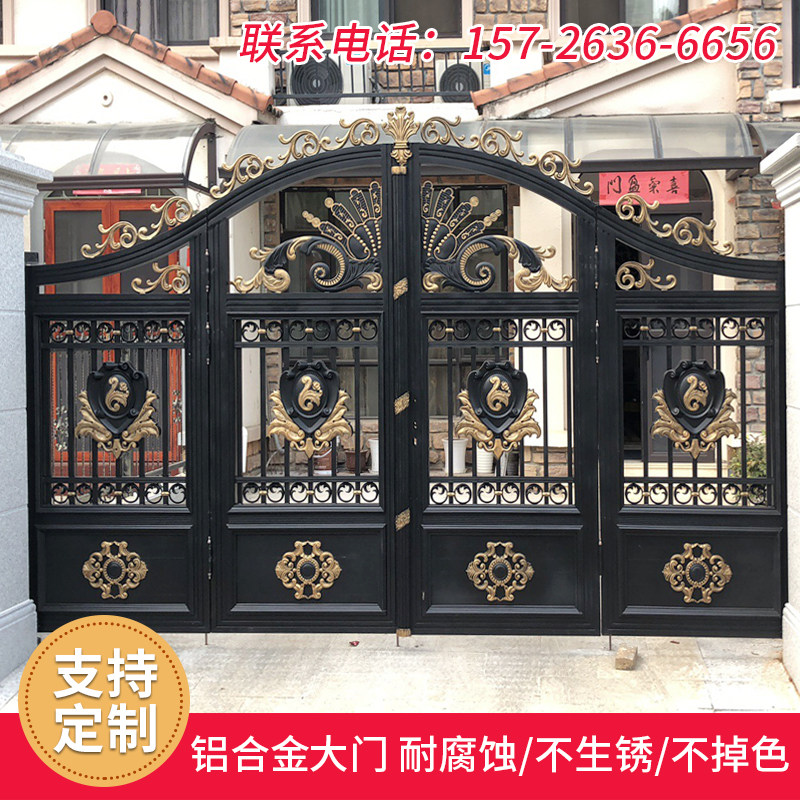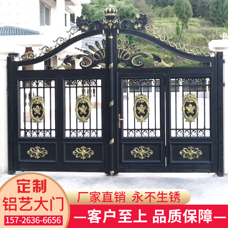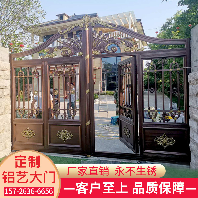 Aluminum art villa courtyard door yard folio wrought iron electric push-pull flat sliding door Village wall door Community Chinese style
