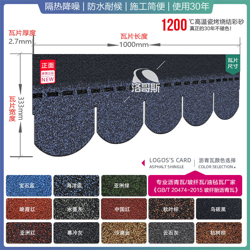 Fish scale asphalt tile insulation linoleum color tile light steel villa wooden house concrete roof roof waterproof fiberglass tile