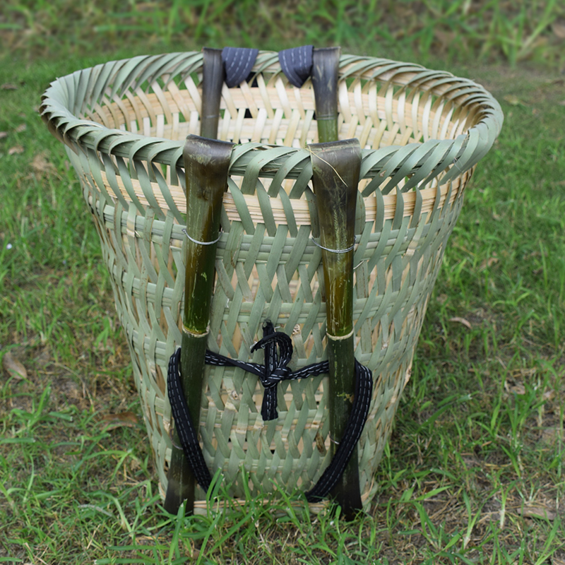 Sichuan bamboo chuckleback with large number of adults taking mushrooms and bamboo baskets to catch and buy vegetable bamboo baskets dance props for tea back
