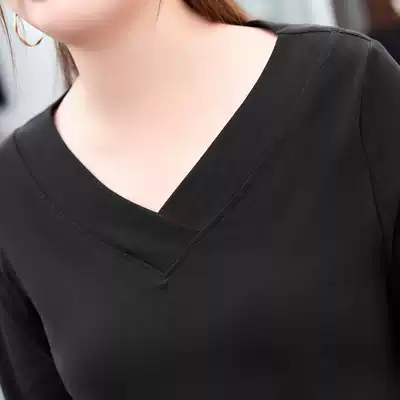 MsShe large size women's 2021 new fat sister lazy temperament thin wide side v collar elastic cotton T-shirt