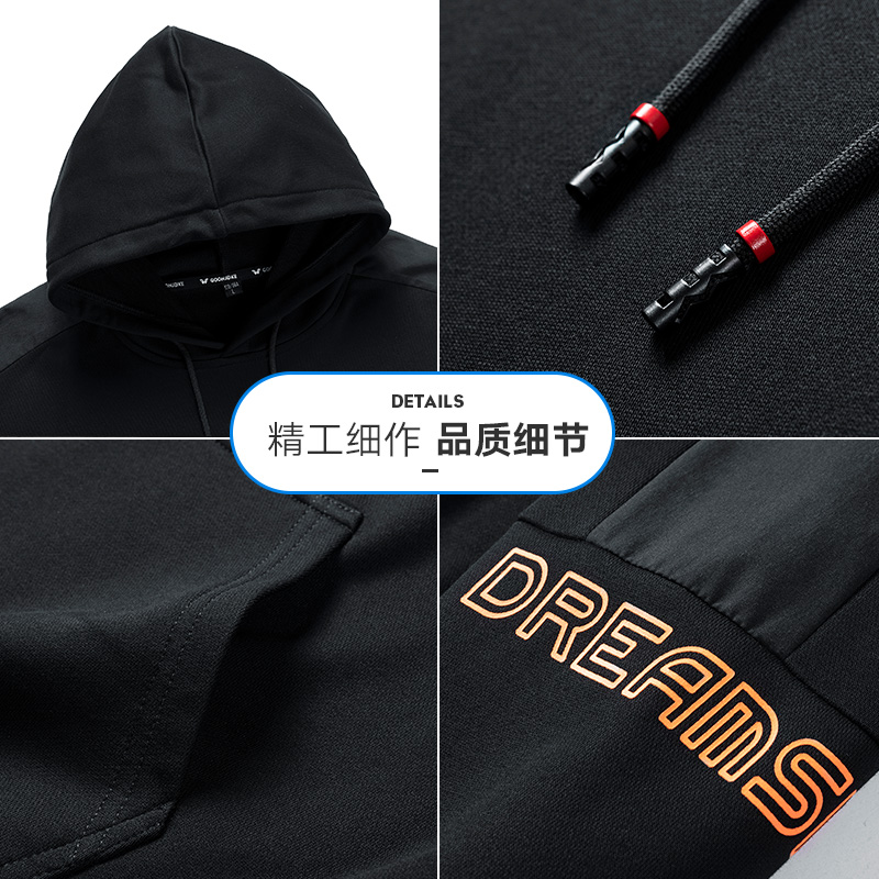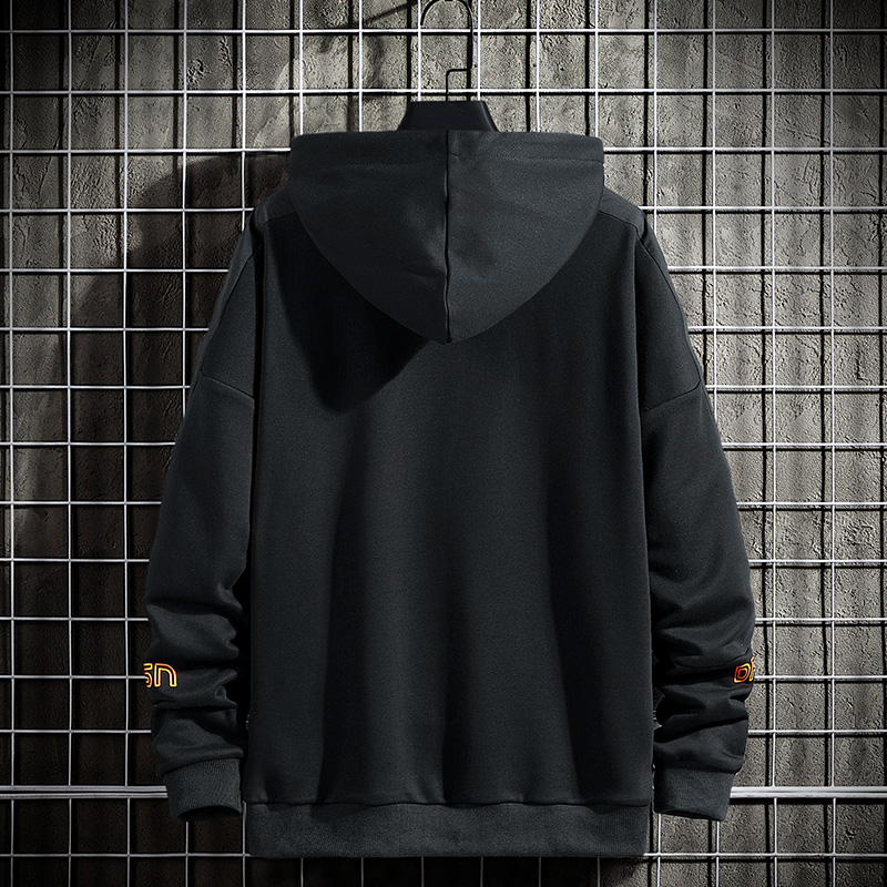 Sweatshirt male spring autumn style round collar loose with cap sleeve head fall autumn clothing trend 100 lap long sleeve T-shirt black autumn clothes