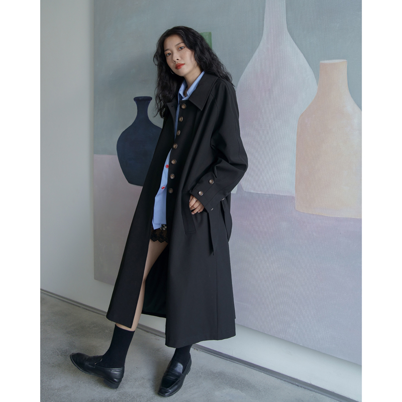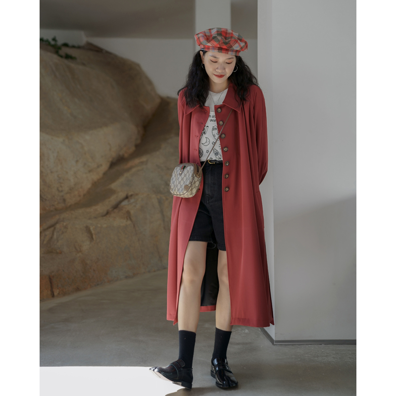 Ouyang Heqi Gas Delight In the Long Edition jacket collection waist Han version loose leisure 100 hitch-style retro commute outside the old commute