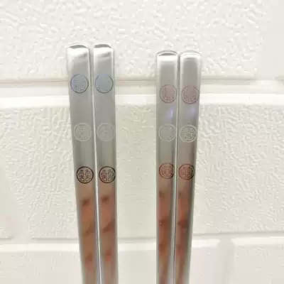 Korean double-happy spoon flat chopsticks original import 18-10 Korean traditional solid stainless steel tableware