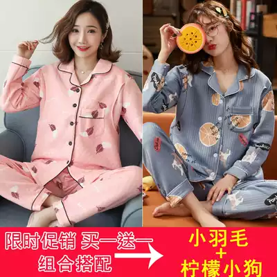 Confinement clothes Spring and autumn 10 months pure cotton postpartum lactation air cotton pregnant women pajamas Autumn and winter maternal lactation clothes 11