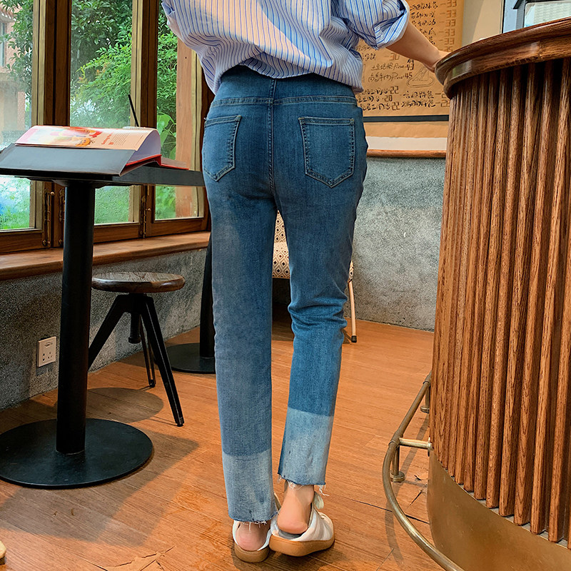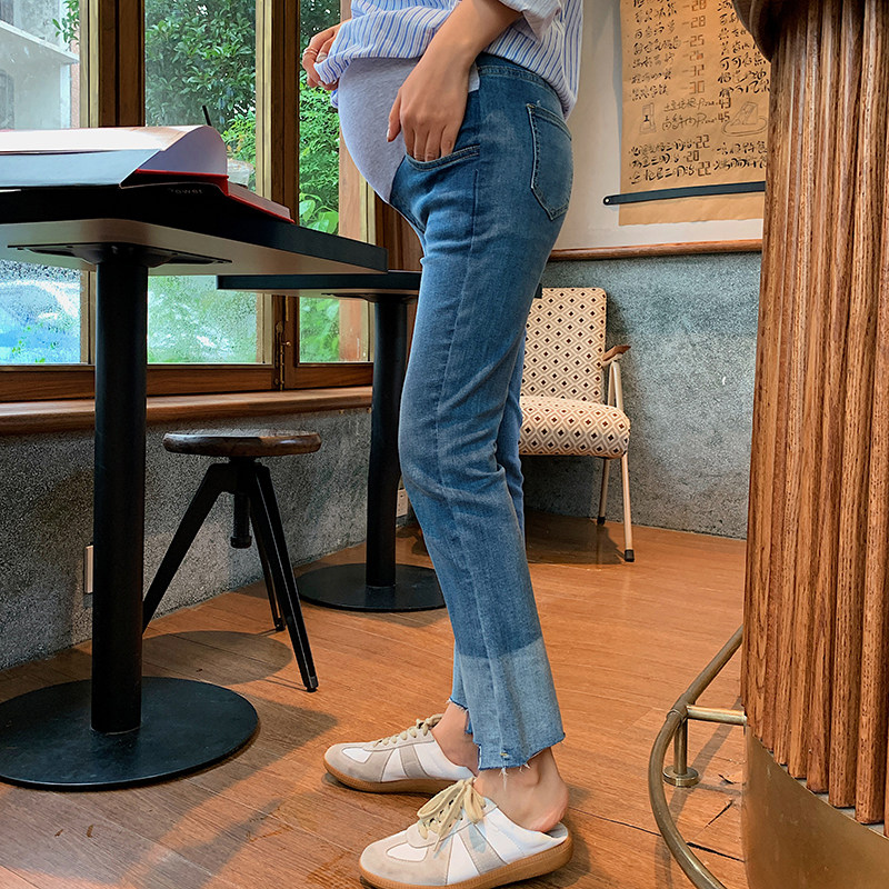 Pregnant women's straight jeans spring and autumn outer wear trousers autumn western style fashion trendy mother can adjust the belly trousers to go out