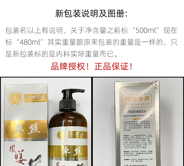 The manufacturer authorizes Zhuo Si Nao Shu Kang Feng Ginger Shampoo Ginger Men and Women Anti-Dandruff Anti-itch Control Ointment Ginger Milk