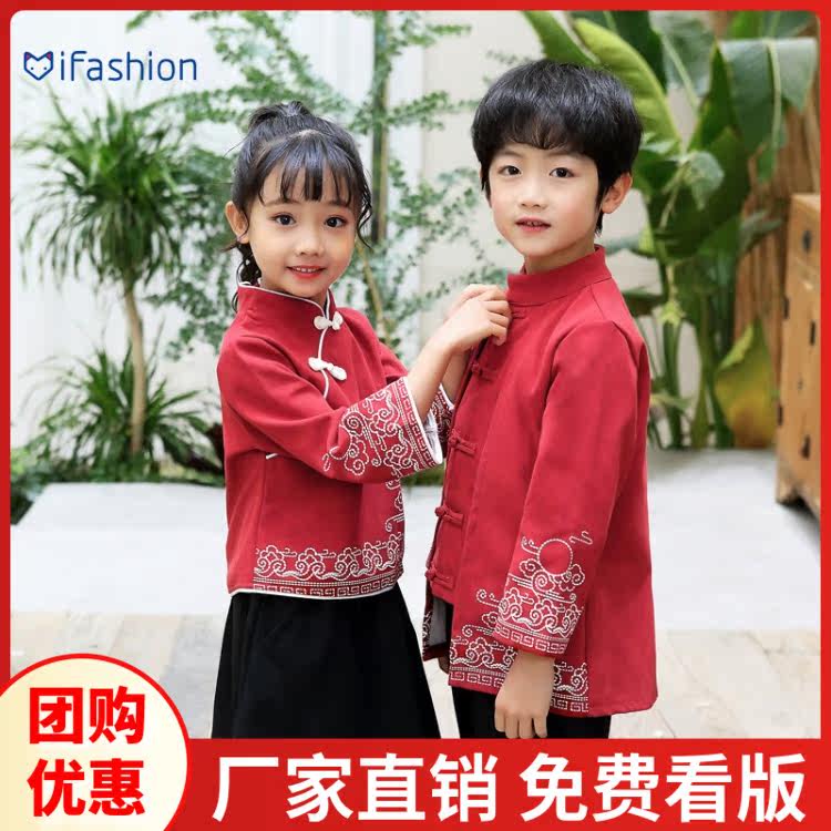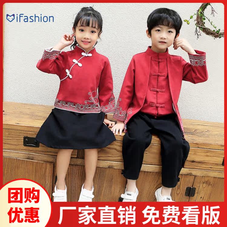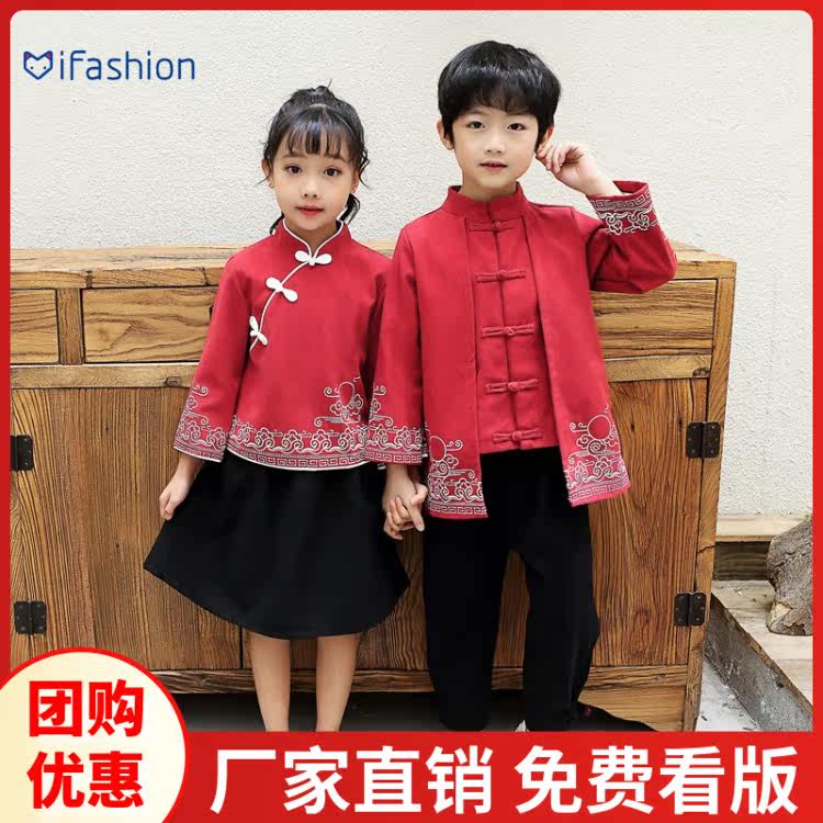Child Hanfu Chinese Wind Class Clothing Kindergarten Spring Autumn Season Garden Clothing Two Sets Of Elementary School Students National Performance Costumes