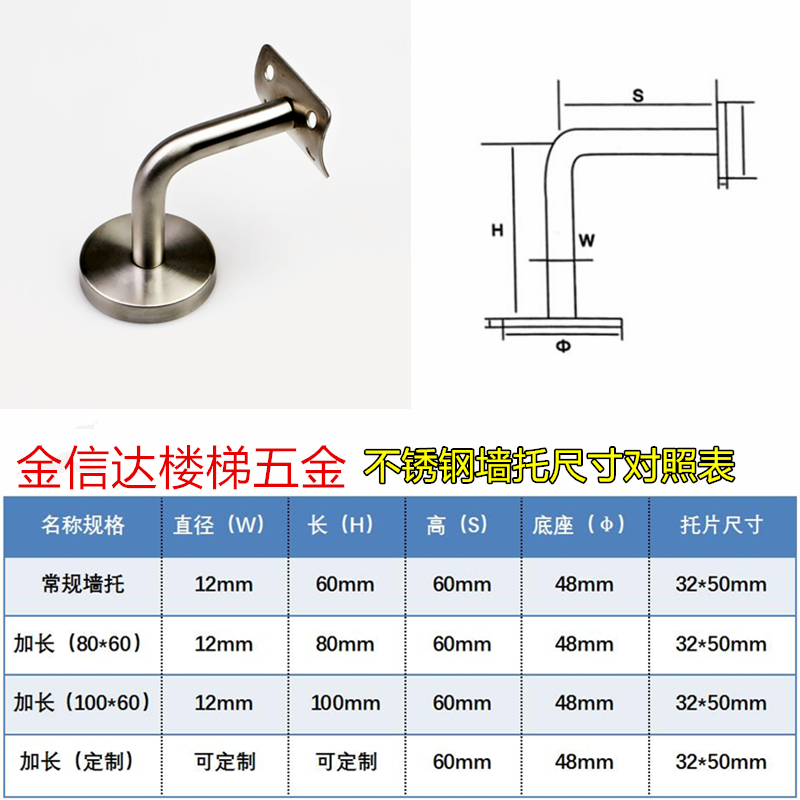 304 stainless steel solid wall bracket fixed support bracket Solid wood stair handrail accessories Against the wall handrail bracket