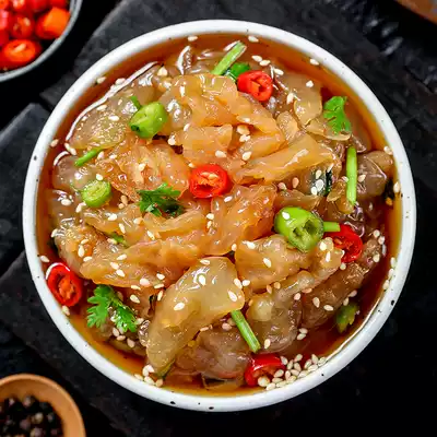Open bag ready-to-eat jellyfish head 238g bagged old vinegar jellyfish subcutaneous meals Jellyfish shredded fresh cold salad appetizer