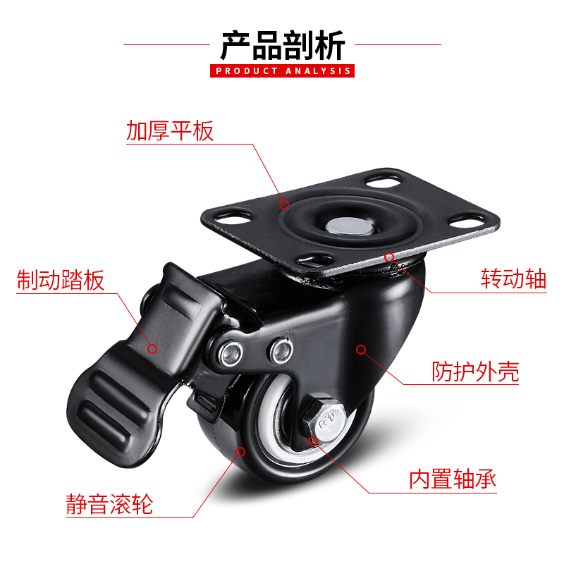 Castors Sub-screw brakes 1 5 inch 2 inch 3 Black 4 Shoe cabinet furniture Sofa Tea Table Shelf Mute Universal Wheel