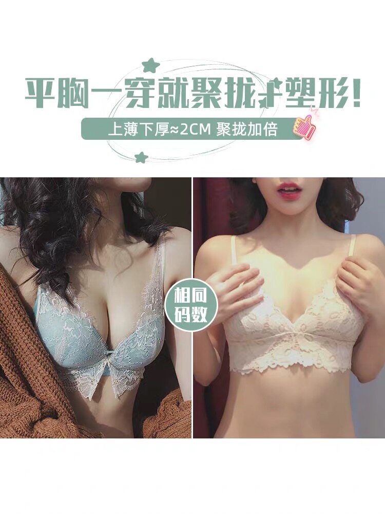 Lace underwear lady lazy lazy ring small bra adjustment type of breast anti-drop-proof summer sexy bra set